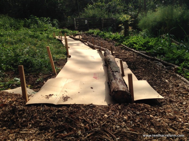 #2 : Posez du carton pour barrer les mauvaises herbes derrière les piquets