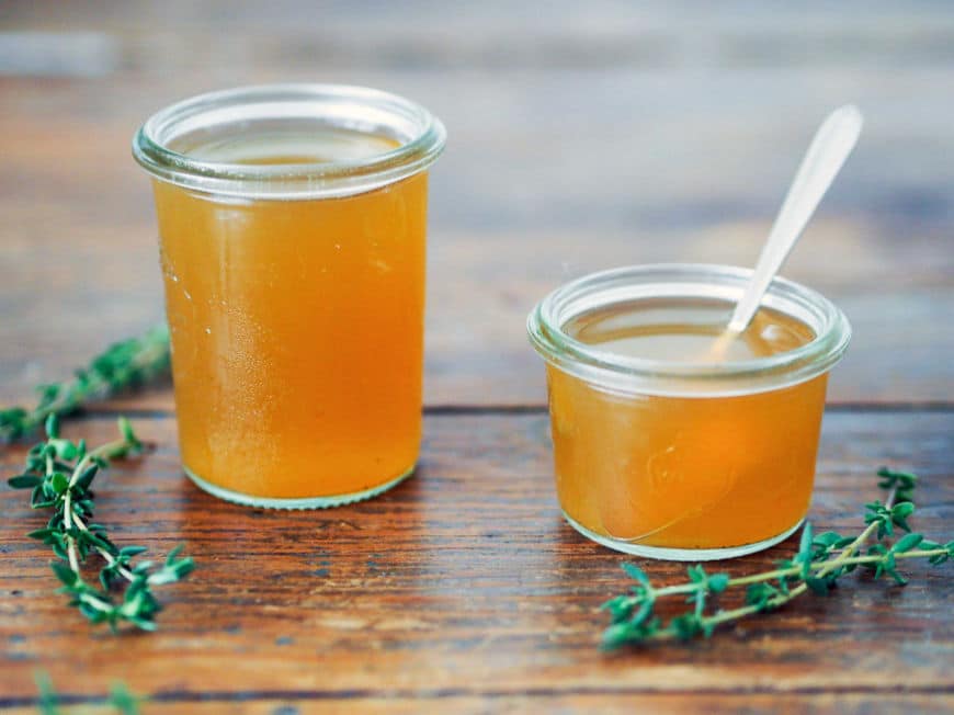 Le lendemain, filtrez le mélange à travers une passoire fine ou un linge propre. Vous obtenez un sirop limpide, sans résidus de thym.