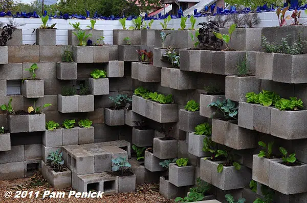 Potager vertical Cinderblock via Pam Penick