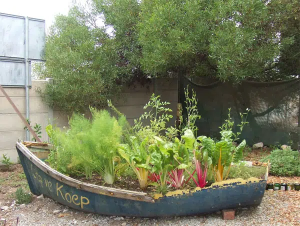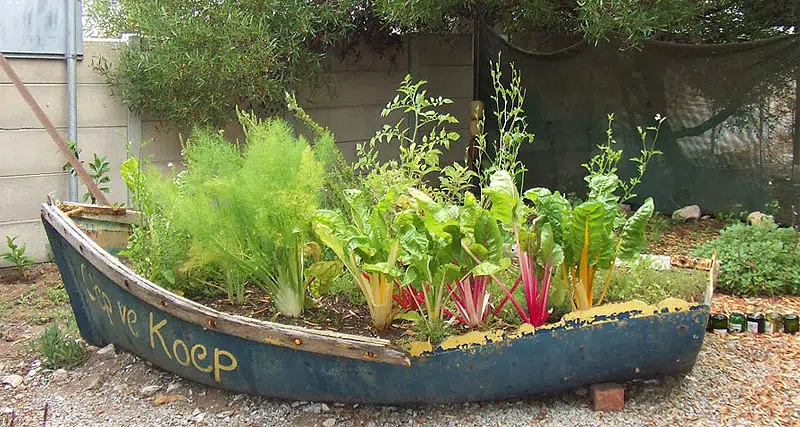 À quel point ce potager de bateau réutilisé est-il cool ? Si vous avez un vieux bateau qui n’est plus adapté à l’eau, gardez-le ! Les enfants adoreront cela, en plus, il permet de garder tous vos légumes élevés à une hauteur pratique.